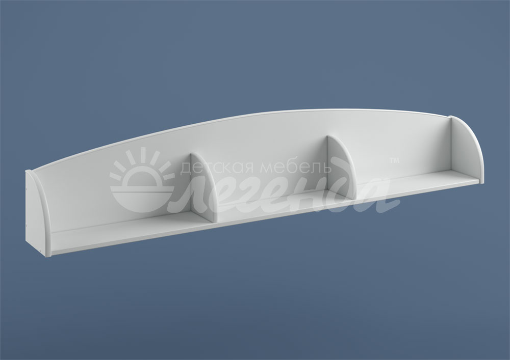 Настенная полка Л-09 белая разделена на три секции и имеет боковые ограничители,на ней удобно располагать приятные мелочи, книжки на ночь и другие вещи.